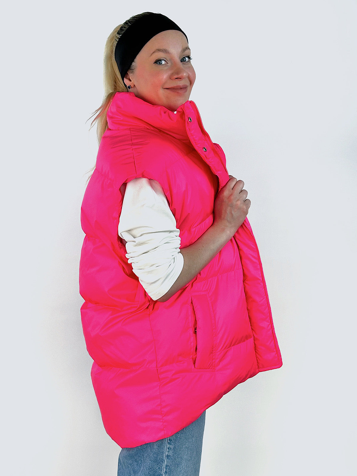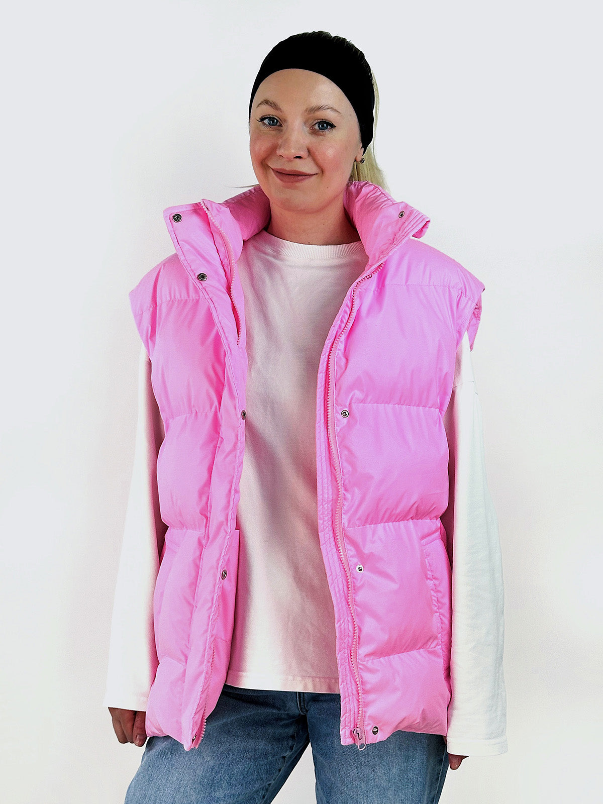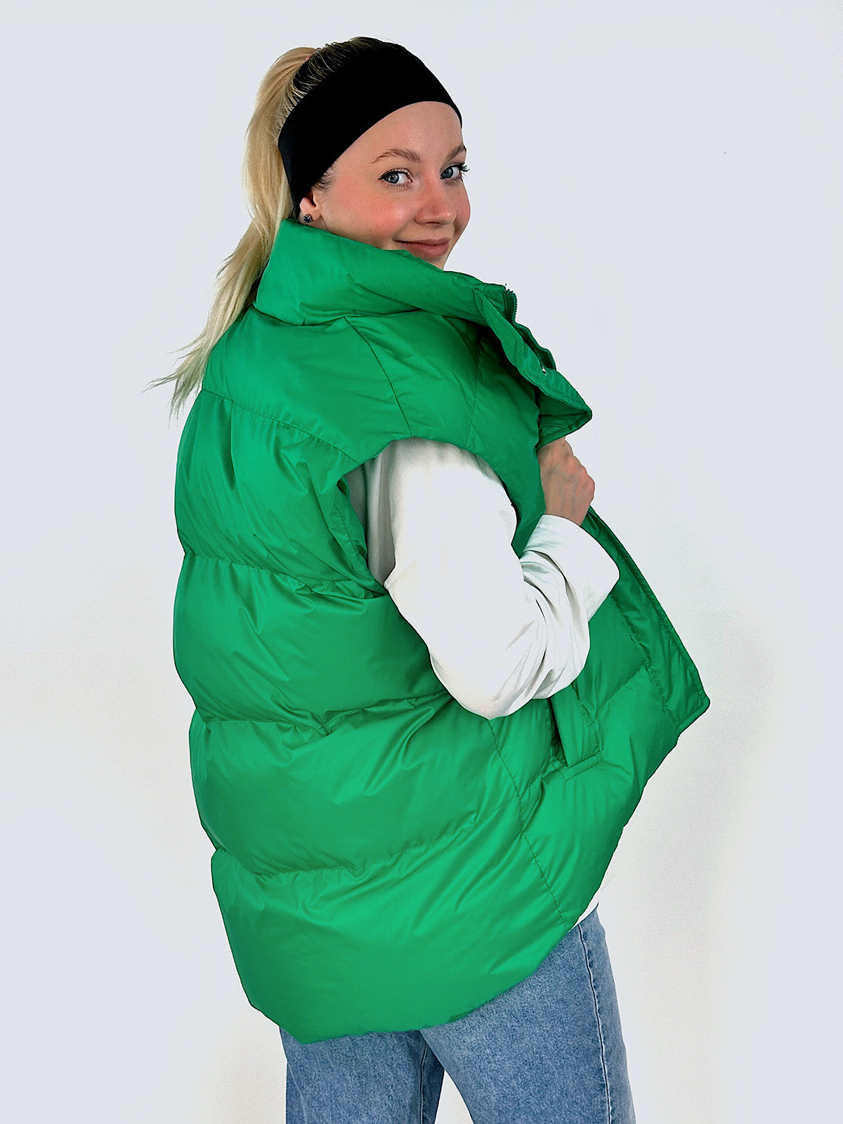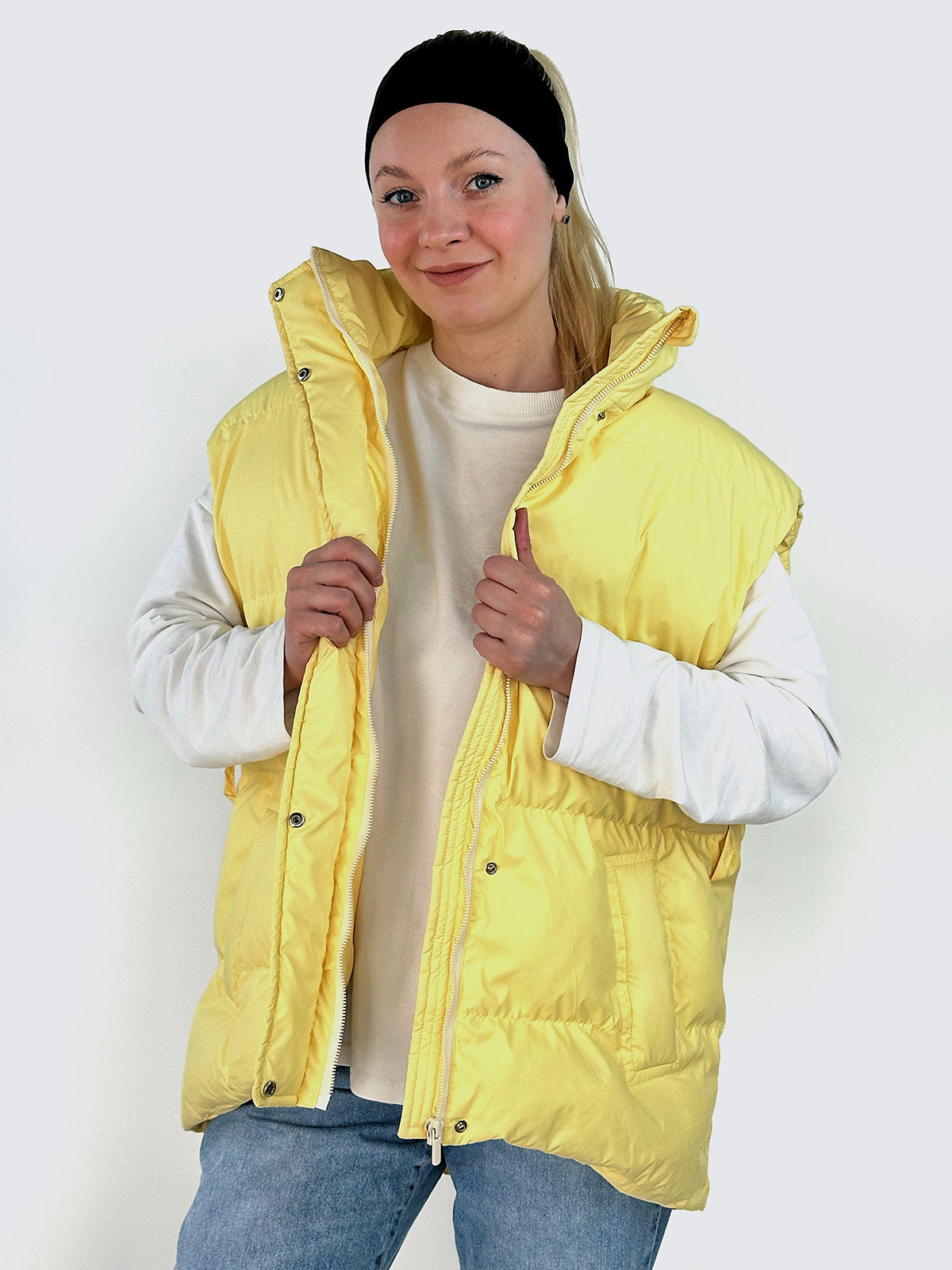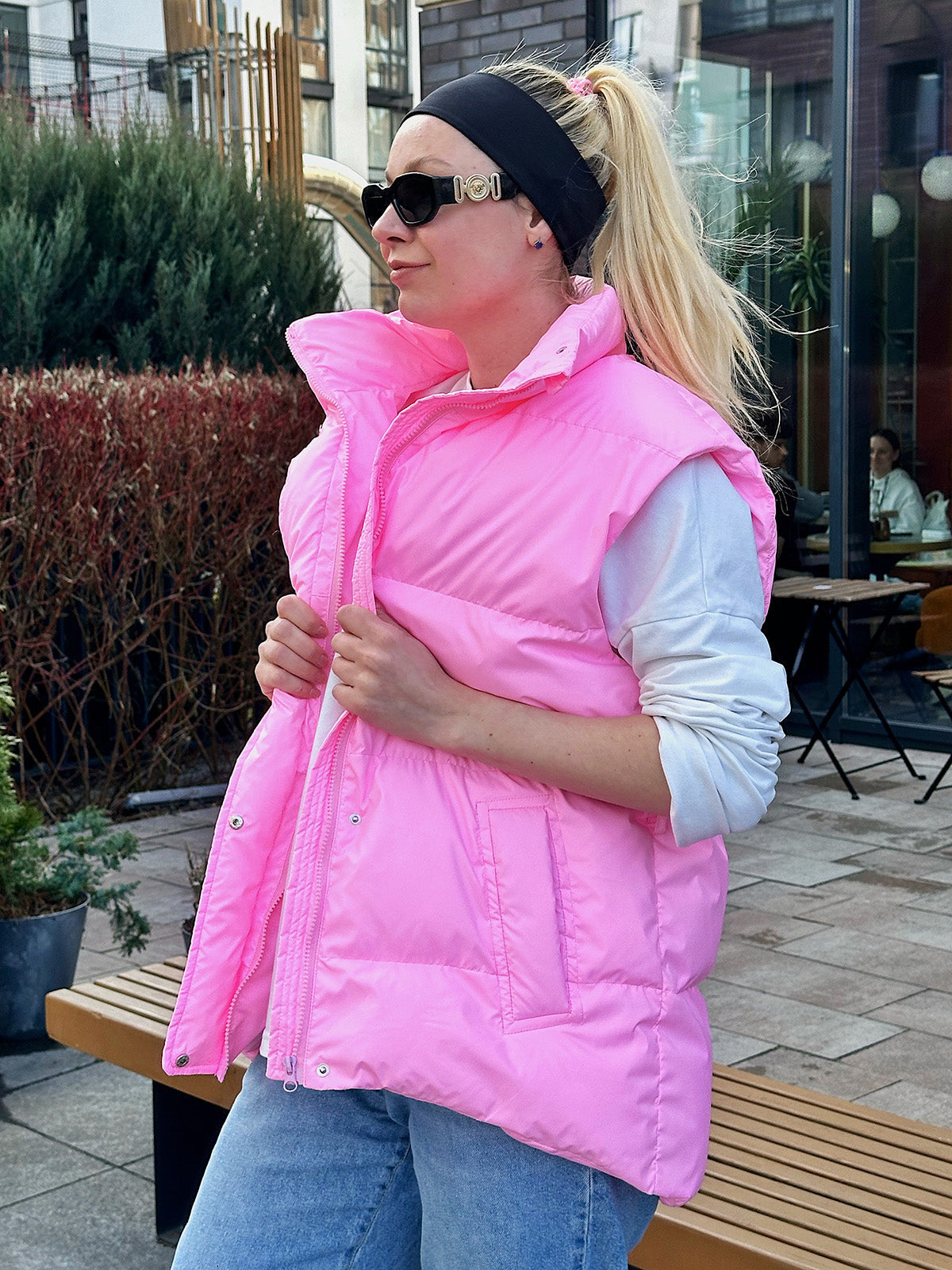 Жіноча демісезонна жилетка на блискавці з кнопками. Має внутрішню кишеню, дві зовнішні та комплектується поясом.